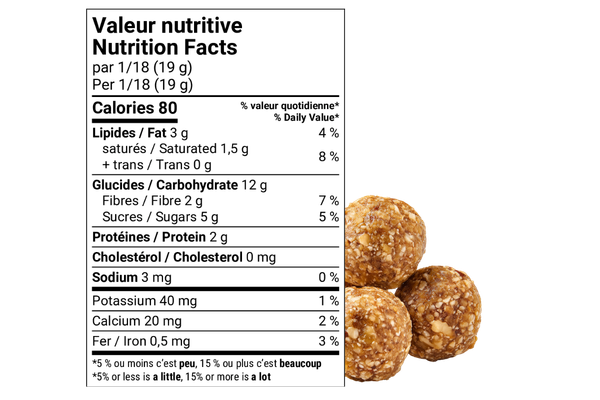 Nos boules d’énergie sont faites avec des ingrédients de qualité, dont plusieurs proviennent du Québec ou du Canada. Le sucre d’érable et les noix de Grenoble offrent un goût riche et réconfortant, parfait pour une pause gourmande plus naturelle.