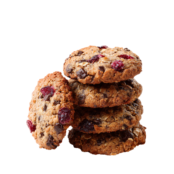 Ingrédients :*Flocons d’avoine, *farine de blé, amandes, canneberges (sucre, huile de tournesol), brisures de chocolat (sucre, liqueur de chocolat, lécithine de soja), *sucre de canne*, graine de chanvre, *graine de chia, poudre à pâte, bicarbonate de soude, sel. Peut contenir des traces de lait, d'œuf, de soja, de blé, de sésame, de sulfites, de gluten, d’arachides et de noix.